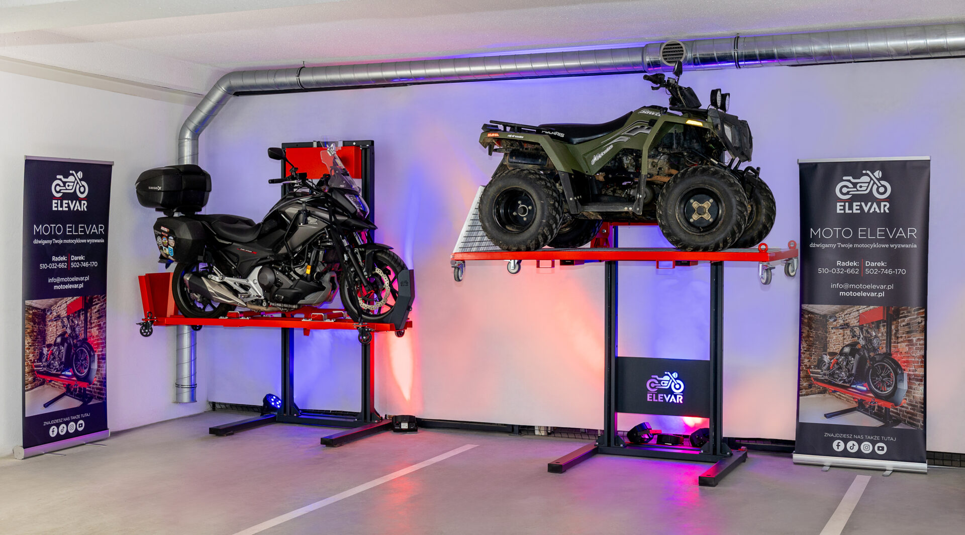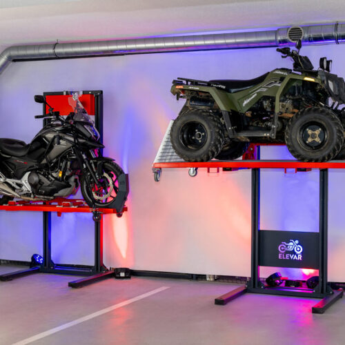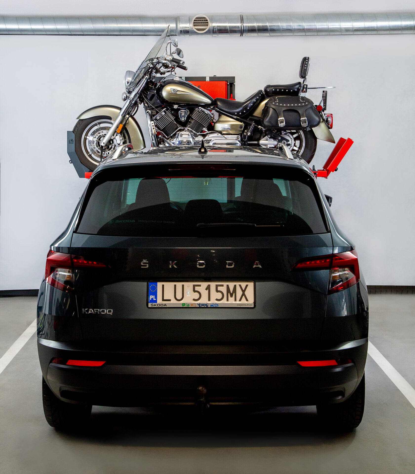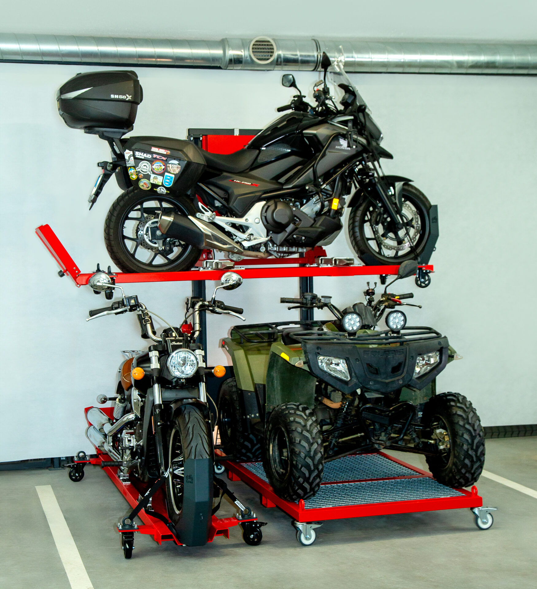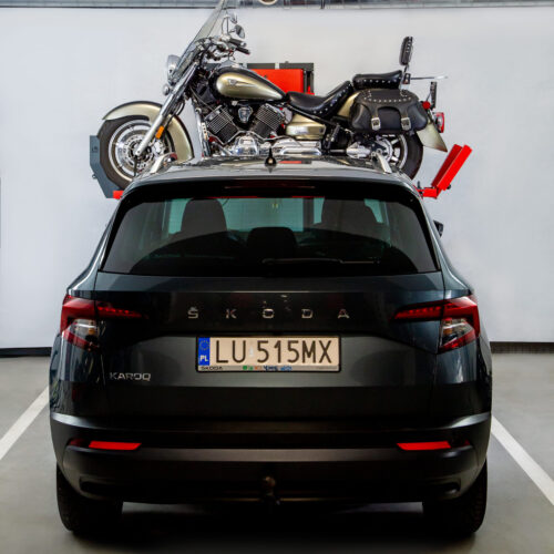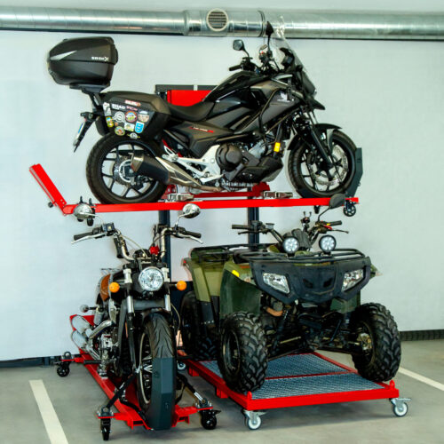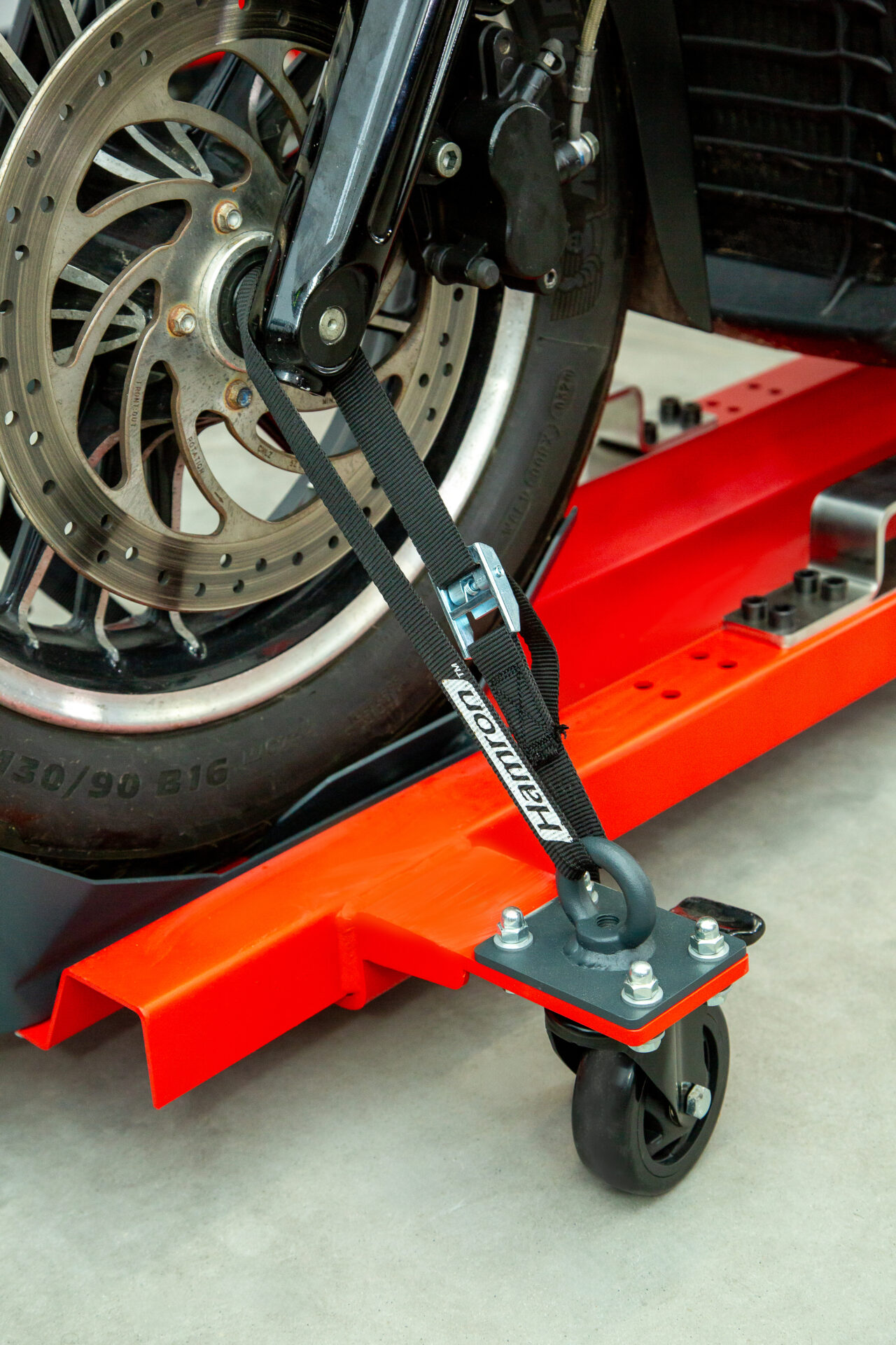 Platforma na motocykl z uchwytem na koło na 4 kółkach